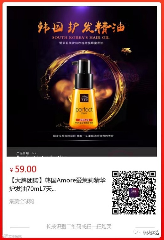 【大牌团购】韩国Amore爱茉莉精华护发油70mL 原价:89元