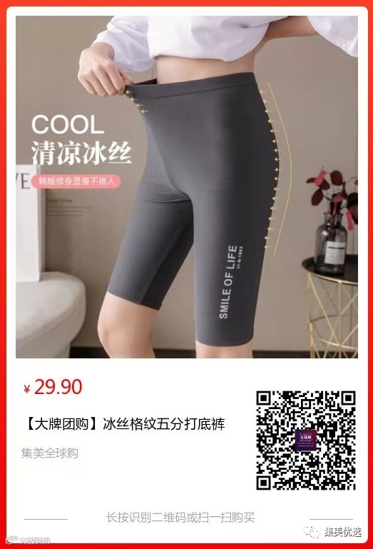 【大牌团购】冰丝格纹五分打底裤 原价:59元 SVIP福利补贴价:29.9元 万能百搭神裤!