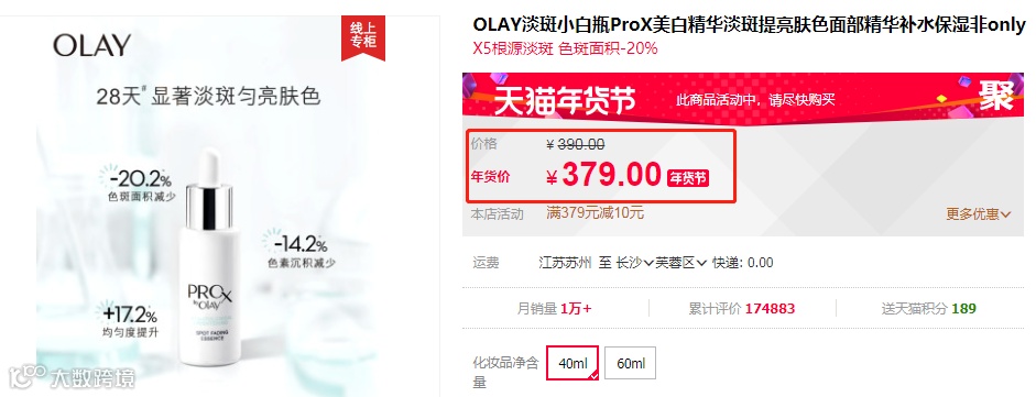至于价格,先给大家看看官网上的40ml是379元,即使逢上节日促销,也是一分不少的。