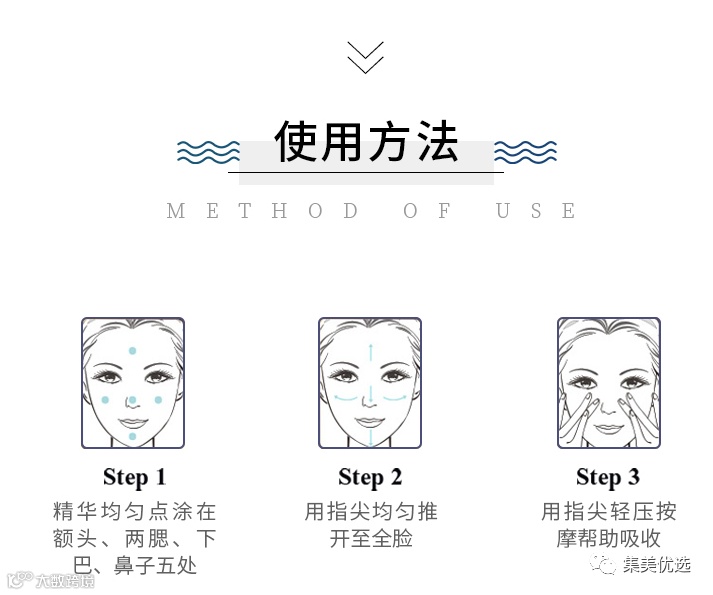使用方法: 每天早晩洁面爽肤水后使用,如果是敏感肌肤取2-3滴就好,一般肤质,每次可以操作3-4滴涂抹于面部,避开眼部,后续可以涂抹保湿的面霜或乳液。