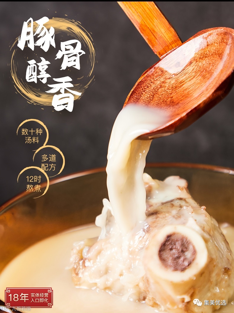用猪大骨搭配不同食材慢火熬制出高汤。