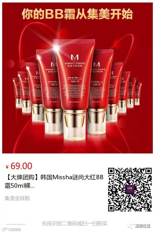 【大牌团购】韩国Missha 谜尚大红BB霜50ml 经典21号嫩白 原价:89元 SVIP福利补贴价:59元 Missha谜尚大红BB霜