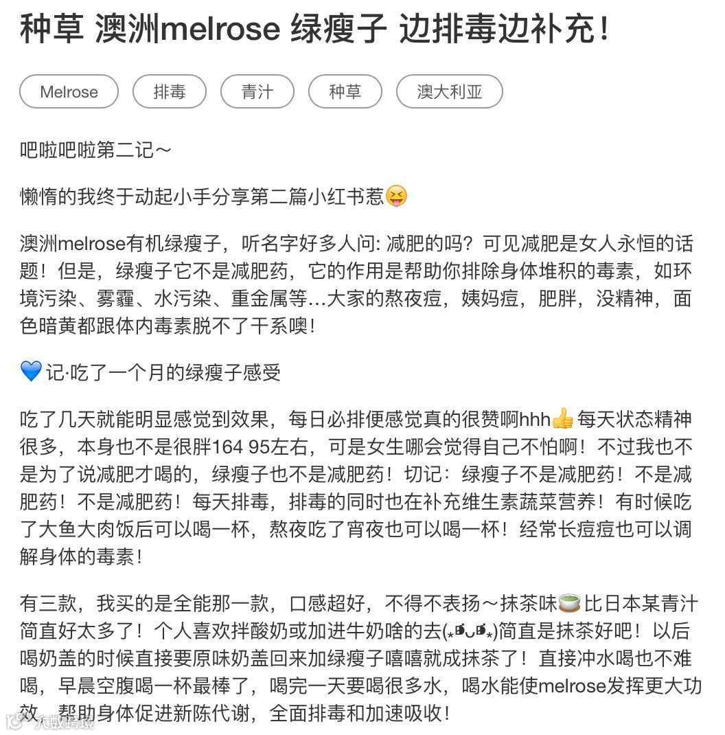 相信大家最近都被澳洲一款melrose绿瘦子刷屏了...