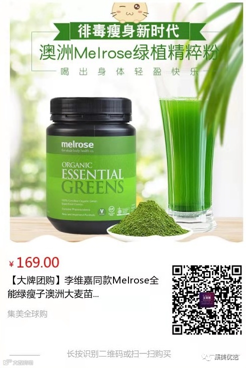 【大牌团购】李维嘉同款Melrose全能绿瘦子澳洲大麦苗粉 原价:189元 SVIP福利补贴价:159元 对于我们普通人来说,减肥、塑形、变美之路,简直是困难重重……