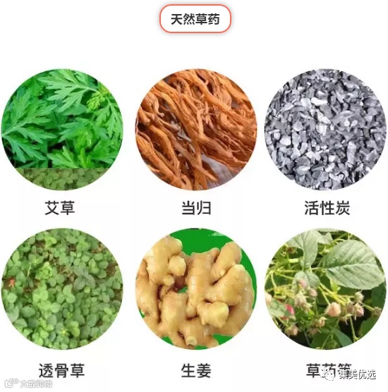 艾草、当归、活性炭、透骨草、生姜等