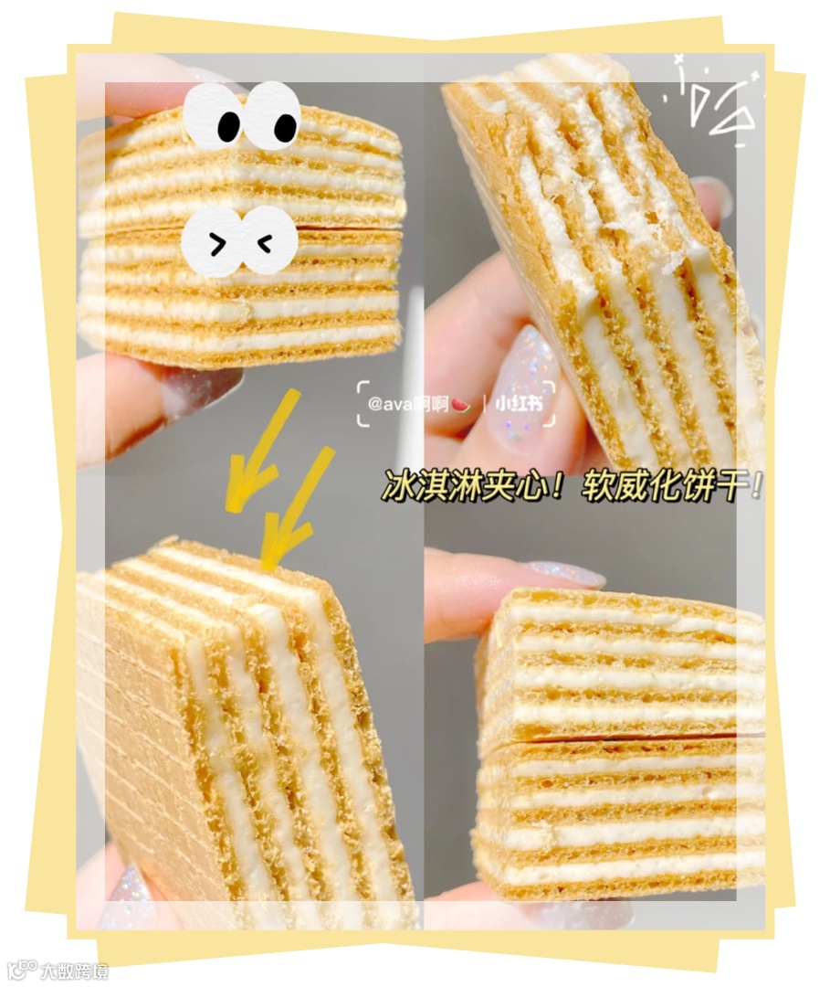 酥脆的威化饼干里面是软糯的冰淇淋夹心,放进冰箱冰冻一会再吃甜度降低了,冰淇淋牛奶香甜的风味也出来了,超级适合喜欢吃甜食的姐妹。