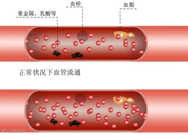 淤堵在血管中,导致身体疼痛