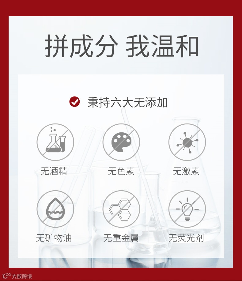 嫩滑、光泽、透亮、无酒精、无色素、无激素、无矿物油、无重金属、无荧光剂,小瓶身有大能量,为肌肤补充营养与水分,肌肤喝饱水。