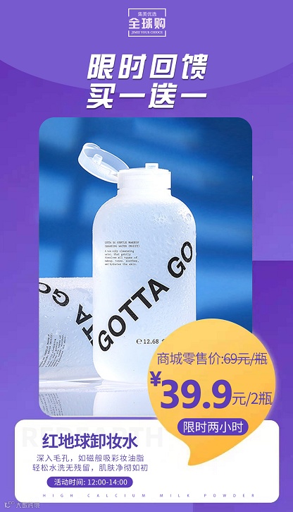 【大牌团购】红地球 RED EARTH 卸妆水 买一送一 原价:69元 大牌团购价:39.9元