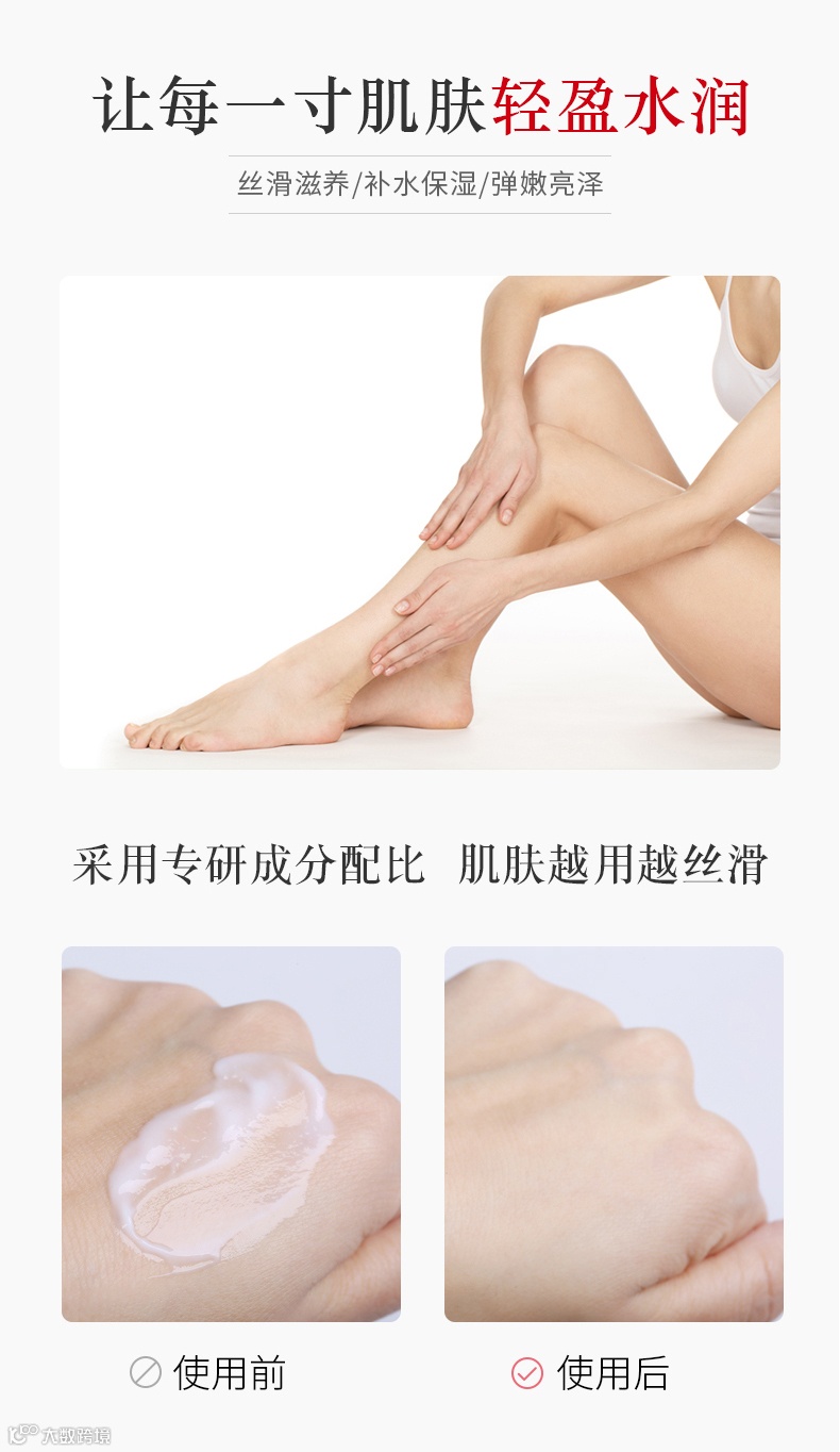 细白美腿,抹平退步肌肤粗糙,黑白不均等问题,亮皙嫩滑美腿秀出来