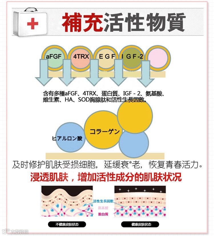 主要成分是提取了鲑鱼精华提取物和干细胞的结合物:PN成分,并采用日本点对点超微渗透技术,能把精华液定位、定层、定量直接输送到所需的基底皮肤很好渗入到肌肤底层,补水提亮,让你在家也能到医美保养效果!