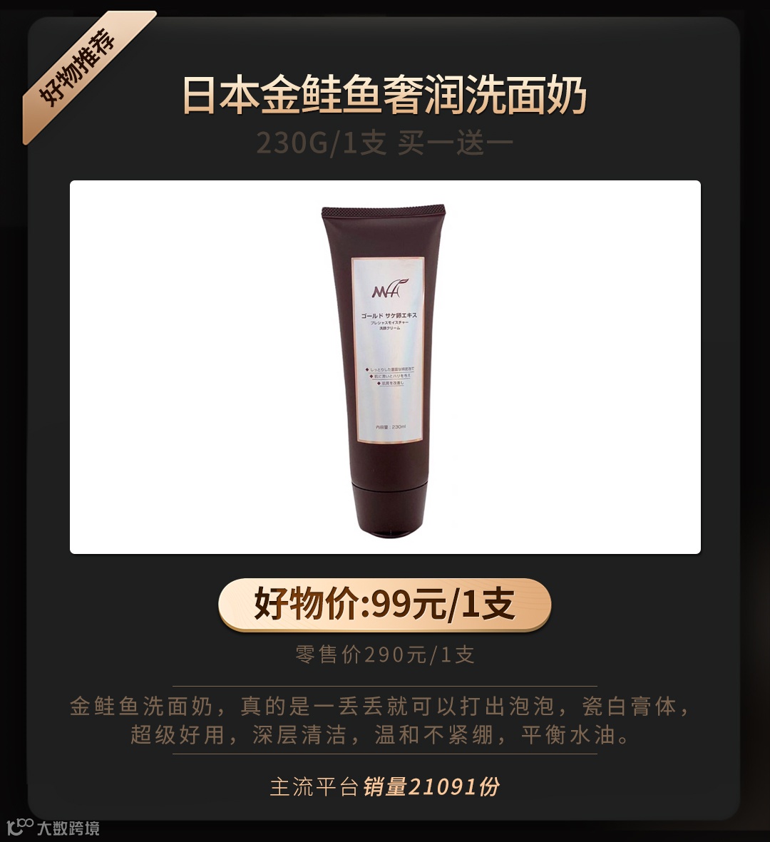 日本金鲑鱼奢润洗面奶230g 买一送一