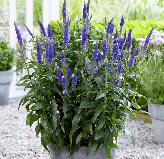 穗花婆婆纳也叫做穗花,具有丛生性,直立向上生长,花序呈长穗状,花期与绣球比较接近,一般从6月份可持续开到秋季。