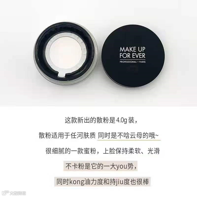 makeupforeveHD散粉是一款专门针对高清影像要求推出的产品,以“高清镜头下,肌肤依然精致无痕”为宣传点。所以有散粉推荐表的这款HD散粉在保证轻薄的同时还能够有效遮盖脸上的毛孔以及瑕疵,打造出自带柔焦美颜的效果!