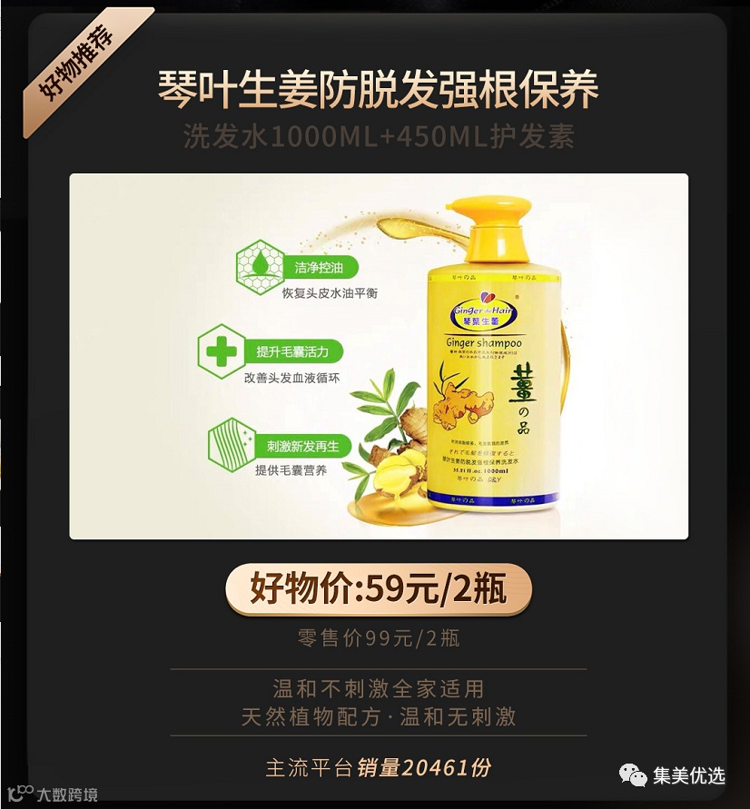 本次平台开团:生姜防脱洗发水1000ml、生姜滋润洗发水1000ml、生姜去屑洗发水1000ml(三种功效三选一),搭配生姜丝滑焗油发膜1000ml!