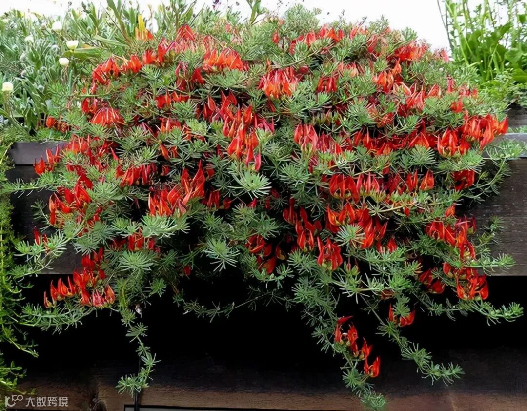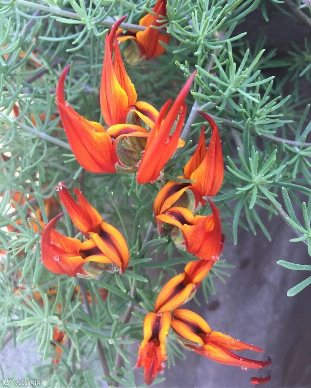 鹦鹉嘴百脉根是一种原产于加纳利群岛的豆科百脉根属多年生常绿开花植物。该植物具有细小的银灰色叶片,枝条匍匐生长,适合悬挂养护作为垂吊植物。其枝条飘逸自然,春末夏初时开满红色的花朵,犹如火焰般灿烂夺目。鹦鹉嘴百脉根是百脉根属中较为稀有的观赏植物之一。