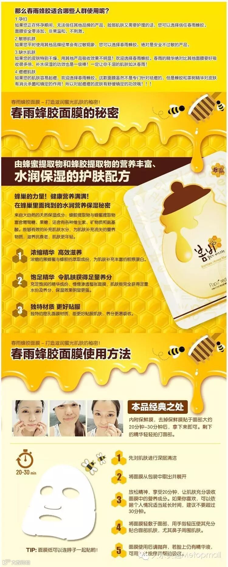 春雨蜂胶是完全不会过敏的面膜,长期使用可以使敏感肌肤摆脱换季过敏的苦恼。