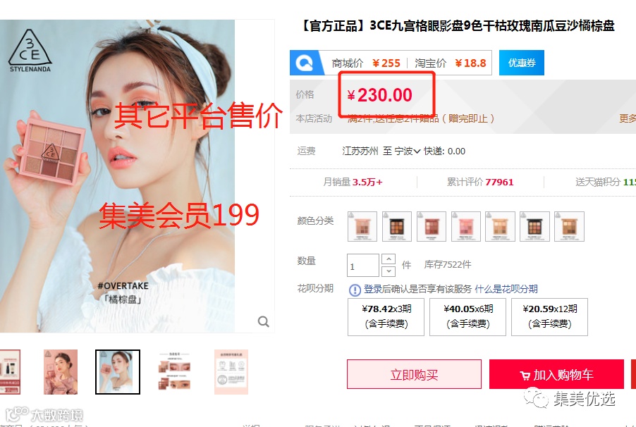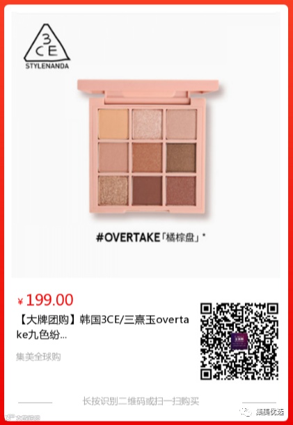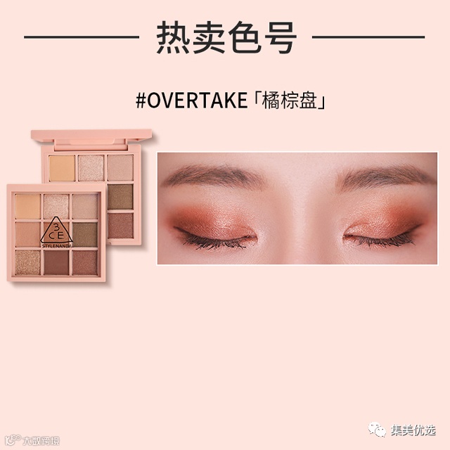 【大牌团购】韩国 3CE/三熹玉 overtake九色纷呈眼影盘 橘棕盘 原价:229元 大牌团购价:199元 新手化妆,不知道该选哪款眼影盘?肿眼泡画眼影不好选颜色?下面这款眼影盘绝对能解决你的问题,堪称手残党的福音哦!赶紧get起来吧!