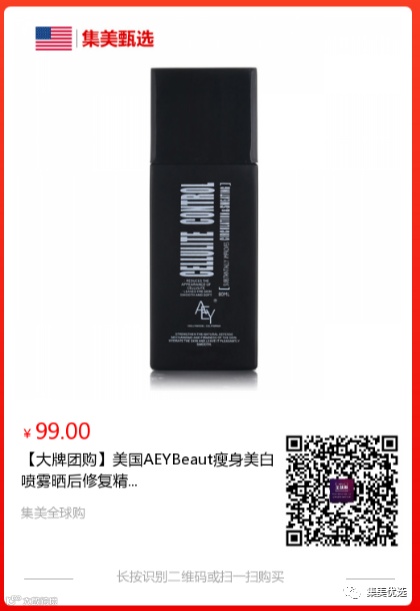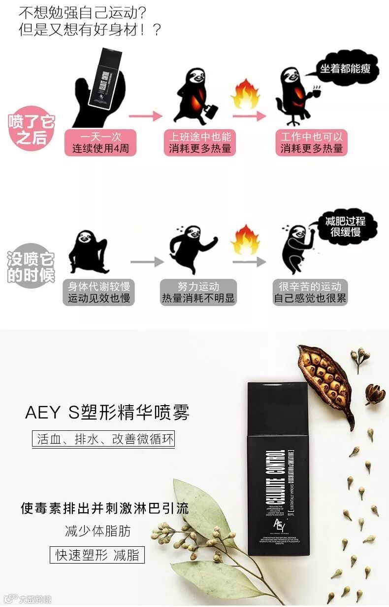 【大牌团购】美国AEY Beaut瘦身喷雾60g 原价:219元 大牌团购价:99元 减肥本来就够难了,还有这么多勾人味蕾的美食诱惑,确实需要一点外力帮忙。试试这款美国 AEY Beaut 纤体喷雾,坚持每天喷几下,脂肪就会消失不见,超模达人都在用!