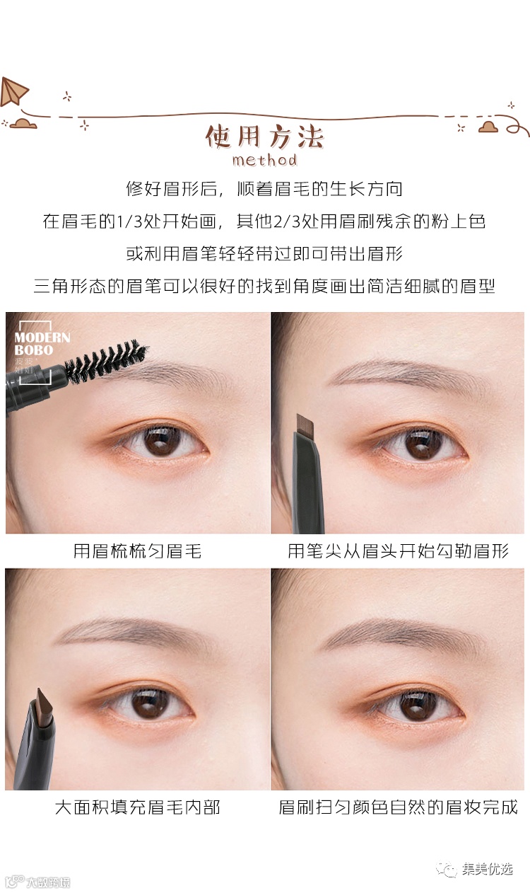 3.自带螺旋眉刷:每根眉毛分明,轻松定型,帮助自然晕染。