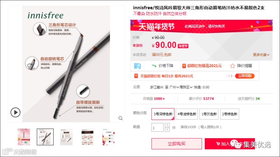 对于一直好眉笔,其中一个考核标准就是是否易上色,对于悦诗风吟这样的大品牌来说,简直无压力了。