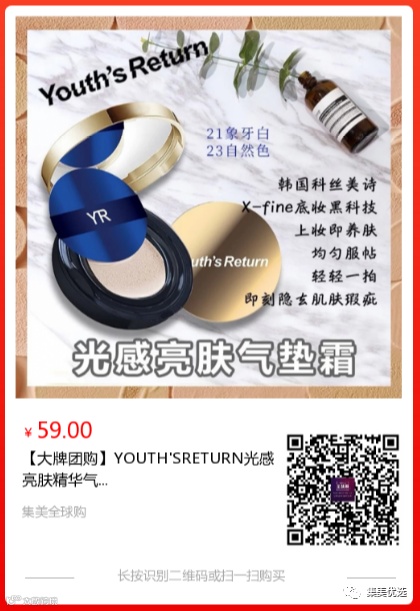 【大牌团购】YOUTH'S RETURN 光感亮肤精华气垫霜15g/1个 原价:89元 大牌团购价:59元 YOUTH'S RETURN气垫