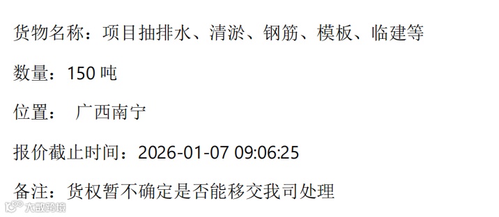 广西南宁&项目抽排水、清淤、钢筋、模板、临建等【150吨】 保拍网Salvagesale