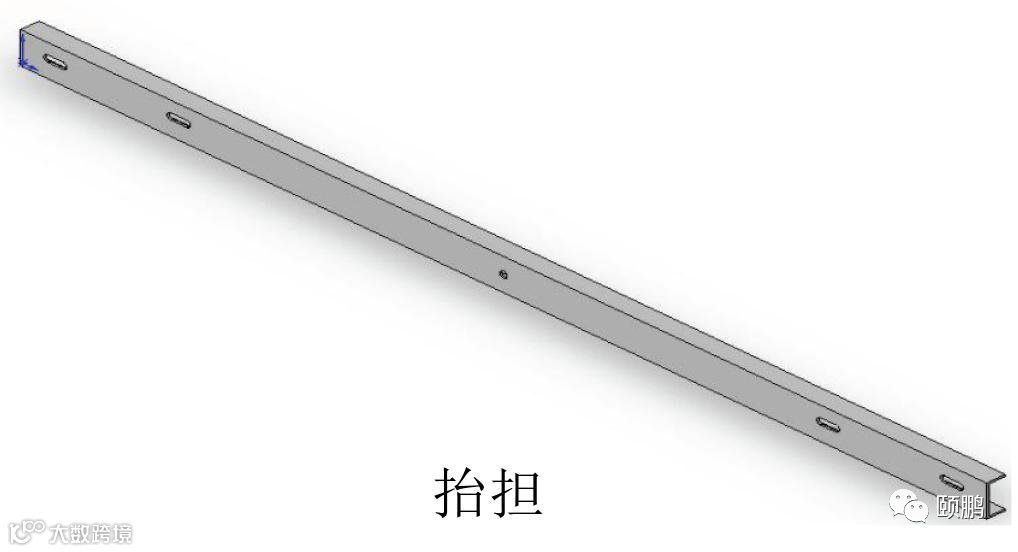 抬担,主要原材料为槽钢,是变压器及真空开关的抬梁横担,装在抬抱上面,规格型号以所用槽钢大小及长度表示,如∠10×3200。