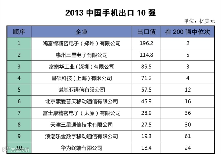 ——中兴通讯股份有限公司没能保住位次;位列出口10强榜尾的华为终端有限公司虽冠有母公司华为技术有限公司名号,但却因具有中外合资血统并不能被完整视