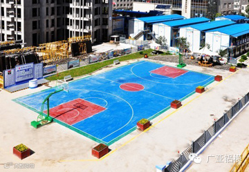施工现场文明施工照片包括:材料堆放、篮球场、十牌二图、休息亭、宣传栏、雨水收集系统(雨水利用)等。
