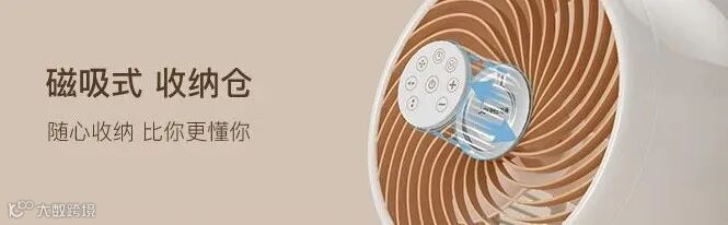 遥控器自带磁吸,使用后可直接磁吸在扇面前的收纳仓内,不占地方、防止丢失,超贴心哦!