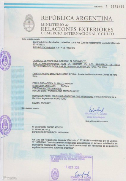 价格表阿根廷使馆认证