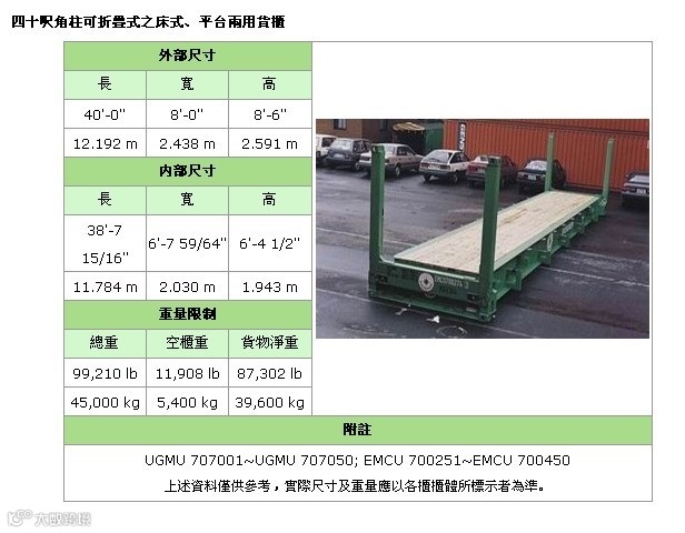 照片名称:40'FR(Flat Rack角柱式折迭平板)