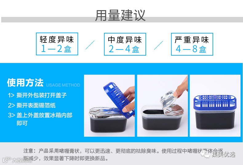 使用方法也很简单,只需要撕开外包装,打开盖子
