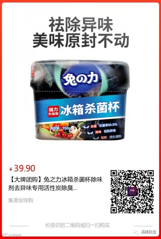 【大牌团购】兔之力冰箱杀菌杯除味剂 150克/盒 4盒 原价:59元 SVIP福利补贴价:29.9元 冰箱作为储备美食的地方可以显示一家的生活质量