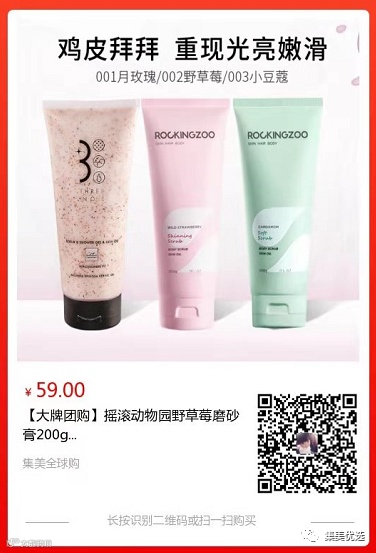 【大牌团购】摇滚动物园野草莓磨砂膏200g 原价:88元 SVIP福利补贴价:59元 作为一个精致的小仙女,每天都该是美美哒~~肤如凝脂、吹弹可破的肌肤谁都想拥有!但是,总有刁民想祸害朕~~身上偏偏出现了鸡皮肤、角质、大黑印...