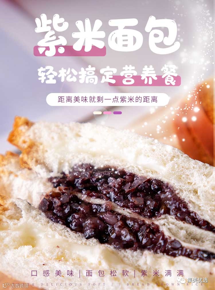 三层夹在一起咬一口,哇塞,简直配合的刚刚好,三两下便解决掉一个,而且吃完一个又一个,根本停不下来,这款面包属于健康食品,紫米也是粗粮养生食品,方便携带,很适合上班一族以及爱吃夜宵和下午茶的朋友。