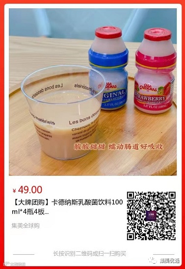 【大牌团购】卡德纳斯乳酸菌饮料100ml*4瓶 4板 原价:69元