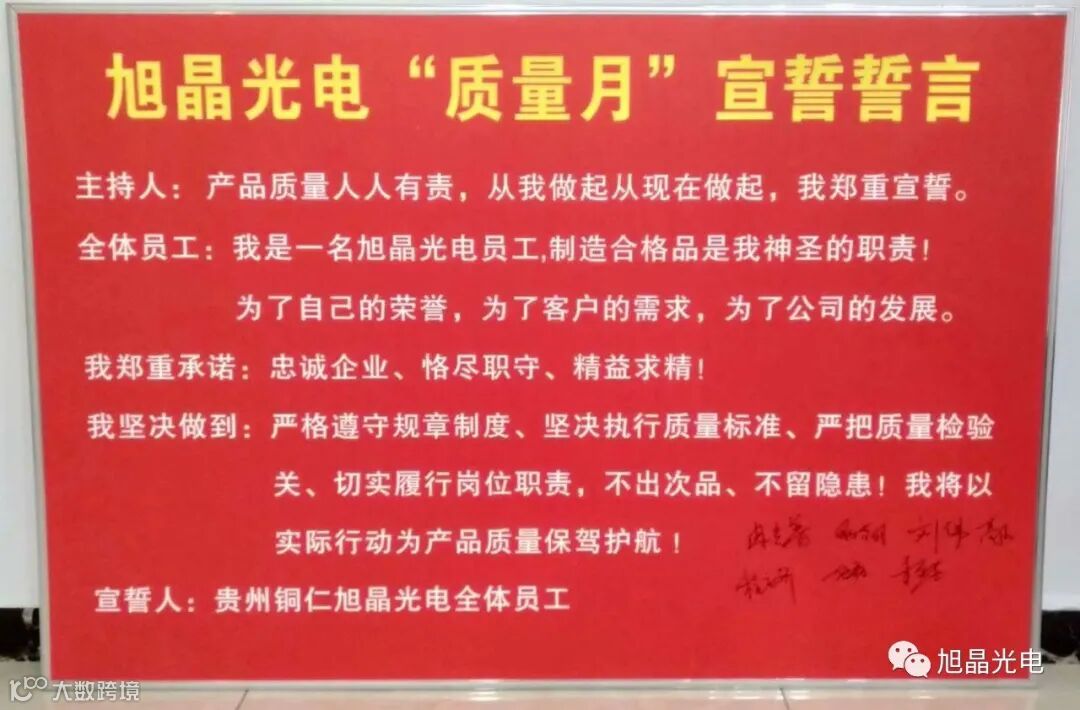 此次质量大会由公司副总经理冉光普主导,品质部经理姚春朋协助,全体员工参与。生产部、品质部、工程部、研发部等负责人宣誓并签下誓言书。