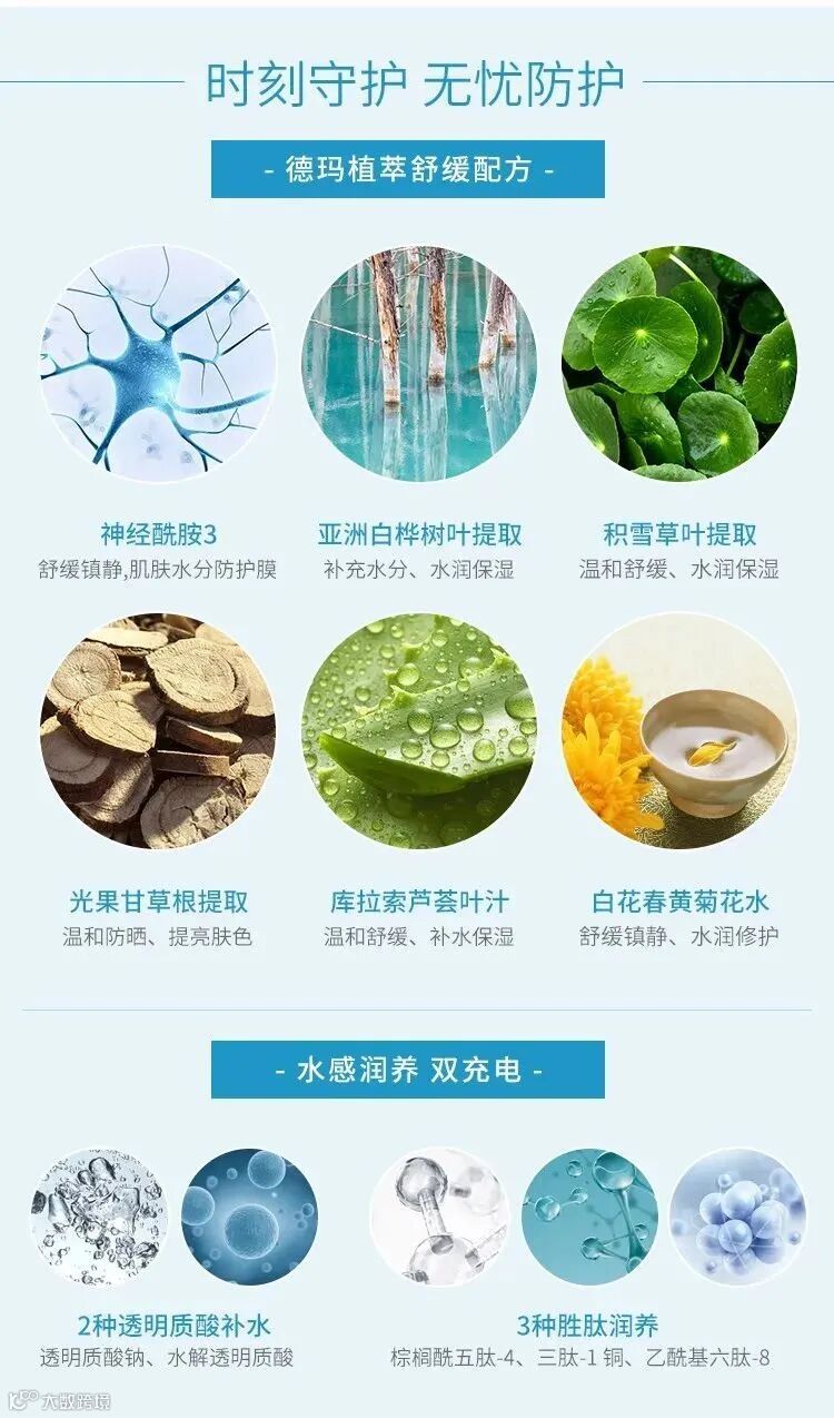 2.温和防晒低刺激:温和植萃,神经酰胺