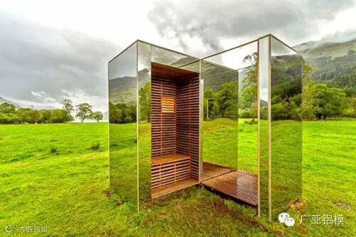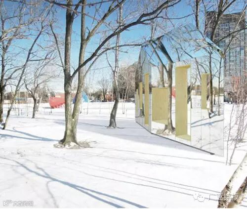 此建筑是由建筑师Dan Hisel设计,建在纽约州北部的一个森林里。他把山崖的一面作为内墙,外墙用反射材料覆盖。房子完全融入周围环境,达到了隐形的目的。