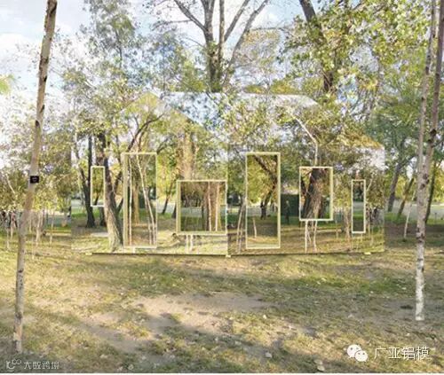 由瑞典建筑师Hans Murman和Ulla Alberts设计制造而成。不像其他建筑依赖镜子的反射效果,它是从人的视觉角度出发。设计师把印有树木的布悬挂在房子周围。