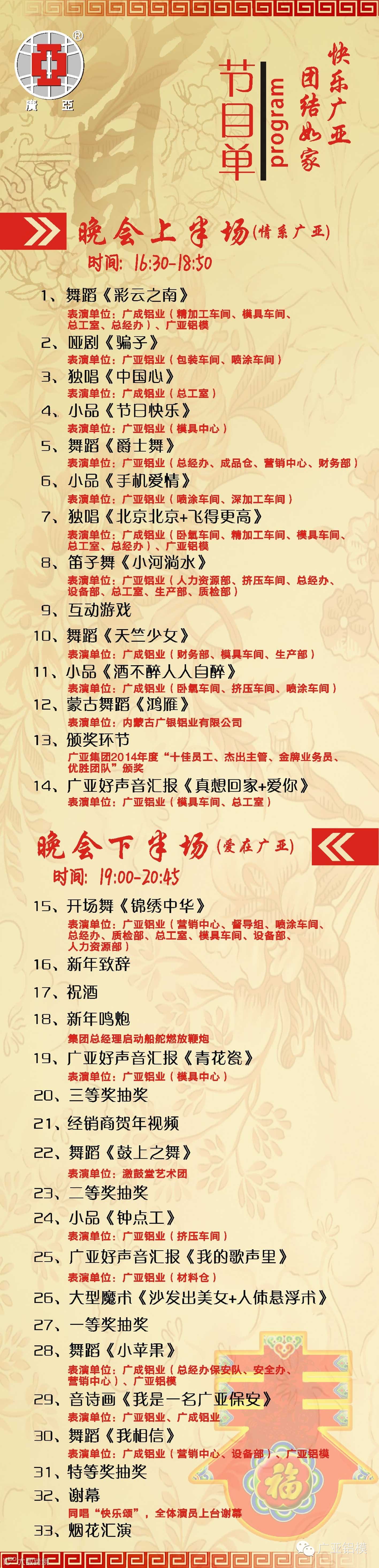 广亚集团2015年迎春联欢晚会节目单公布 广亚铝模