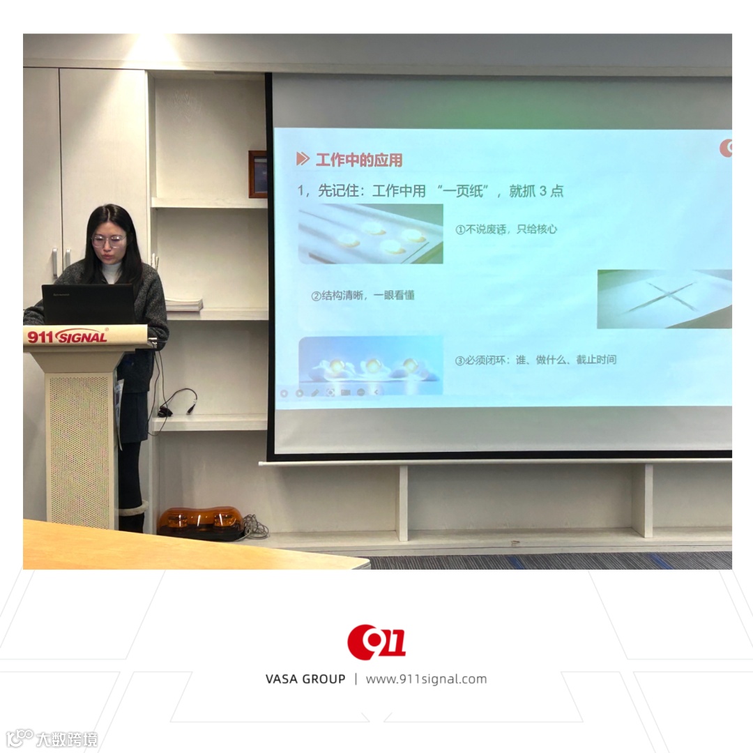 读书分享会现场,党支部书记虞总结合《一页纸高效沟通法》的精髓做了总结分享,给员工指明了将书中智慧转化为实际行动的三点职场进阶心法: