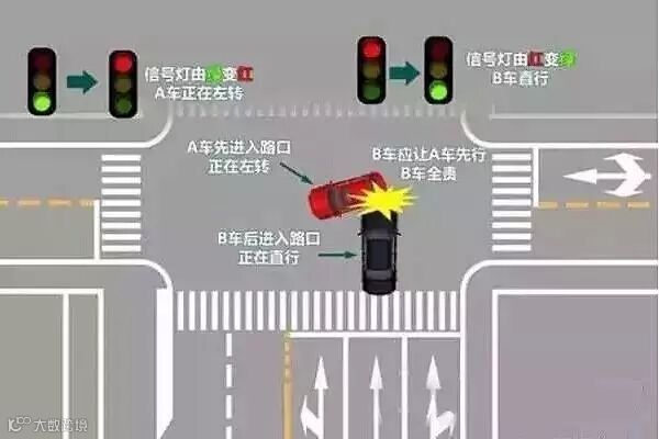 在十字路口,刚好是红灯,你在等红灯变绿灯时,这时你的方向就是“灯头”,而与你交叉方向,在等绿灯变红灯的车的方向为“灯尾”。这时如果“灯尾”方向的车在绿灯和黄灯交替闪时(此时他并没有闯红灯),进入路口时,而你的方向已变绿灯时,你必须要让这辆车先行。