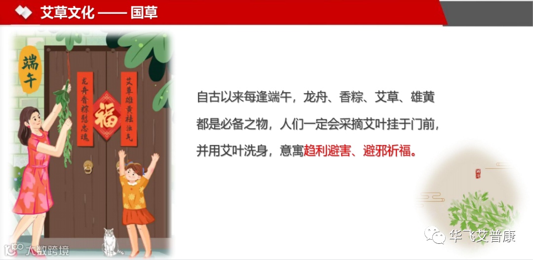 被称为国草主要是因为艾草自带文化——自古以来每逢端午,龙舟、香粽、艾草、雄黄都是必备之物,人们一定会采摘艾叶挂于门前,并用艾叶洗身,意寓趋利避害、避邪祈福。