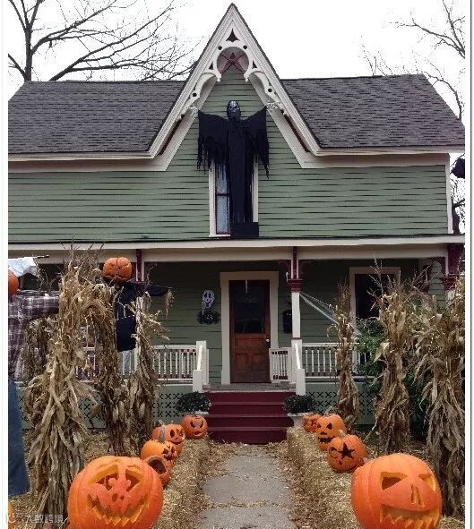咋一看,屋子就如同荒宅,事实上,这只是外国人购买了各种道具装饰而而成的。装饰热门品当然少不了南瓜灯啦!