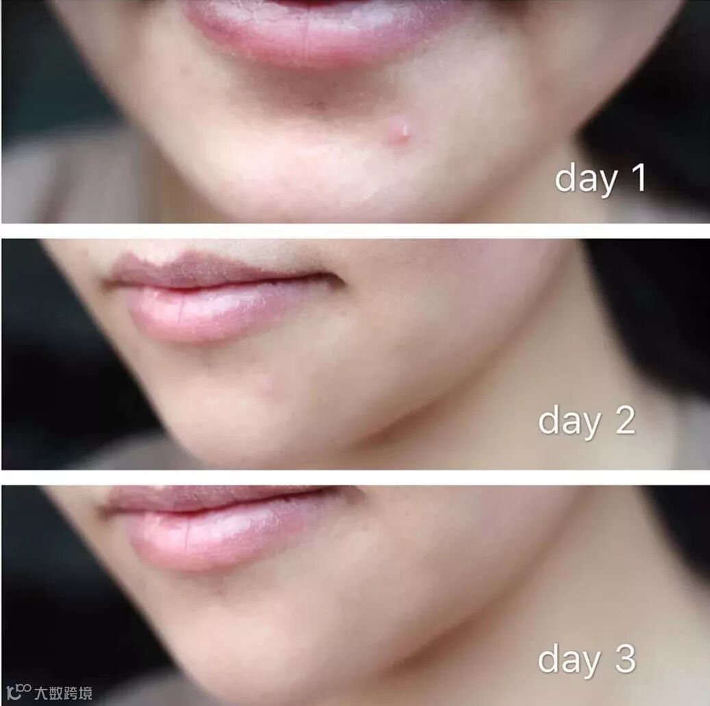 刚长出的痘痘,是最容易改善的,晚上睡前将清痘修护膏抹在痘痘处,第2天,痘痘就干瘪下去,到第3天完全看不出痘痘的痕迹,就是这么神奇、高效