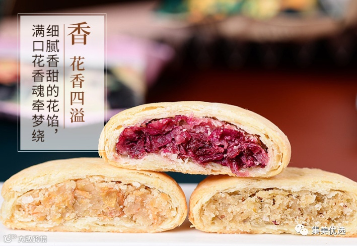 鲜花馅口感非常饱满,甜度适中,好吃不腻,完全颠覆对传统鲜花饼的甜腻印象。