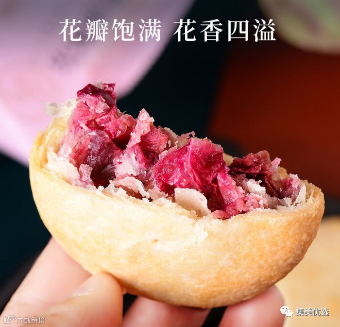 完整的花瓣入馅,当我轻咬以后,能看到完整的花瓣,也丝毫没有感觉到馅料太甜。